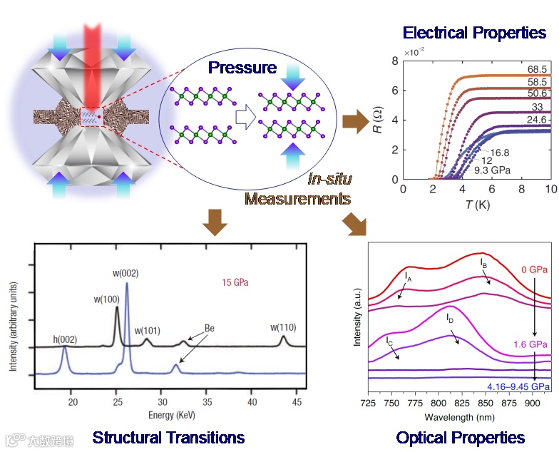 二维材料及其异质结拥有独特的层状结构和物理性能。由于其材料结构和性能优异的可调控性,二维材料及其异质结拥有非常广阔的研究和应用前景。在各种调控方法中,压强工程是一种独特的调控二维材料结构和物理性能的方法,能够通过压强来有效地改变二维结构的层间相互作用。特别是基于金刚石对顶砧(DAC)技术,具有可实现压强高,适合各种原位测量等优点,在二维体系的研究中得到了广泛的应用。