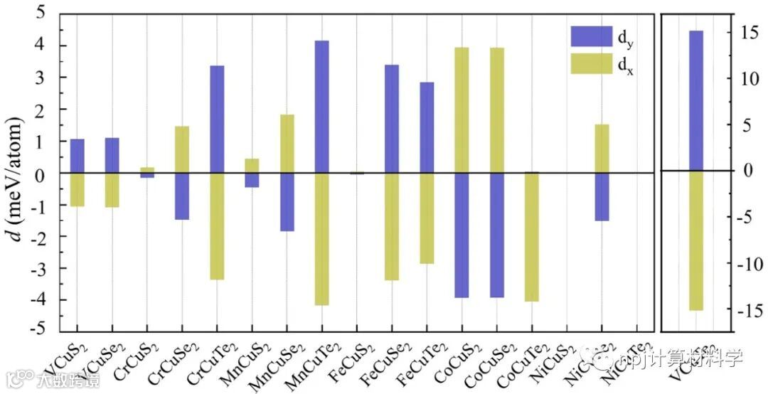 Fig.2 The calculated anisotropic DMI of monolayer MCuX2