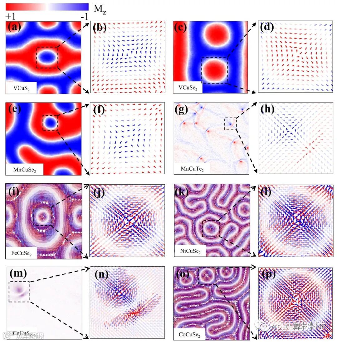 A team led by Prof. Hongxin Yang team From Ningbo Institute of Materials Technology and Engineering, Chinese Academy of Sciences, via using first-principles calculations and atomistic spin model simulations confirm the anisotropic ferromagnetic (FM) skyrmions, FM bimerons, antiferromagnetic (AFM) skyrmions and AFM bimerons can be realized in layered van der Waals magnet MCuX2 (M: 3D Transition Metal (TM), X: VIA). In addition, it is revealed that the magnetic parameters and the size of the chiral magnetic structures of monolayers VCuSe2 are sensitive to stress and temperature, and the the possibility of antiskyrmions formation up to a hundred Kelvin is demonstrated. This study has important research prospects for the future research of van der Waals magnets and spintronics devices. This paper was recently published in npj Computational Materials 8:128 (2022).