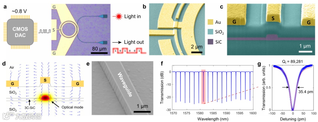 由于其诱人的光学和电子特性,碳化硅成为了新兴的集成光子学平台。通过利用SiC的高折射率(~2.57)、宽禁带、低热光系数、高电子迁移率和热导率,可以在这种材料中制造出性能稳定的高密度集成光子器件。此外,由于其与互补金属氧化物半导体(CMOS)铸造纳米制造兼容,这可能以较低的制造成本实现,这也为与电子集成提供了机会。高光学损伤阈值和450 GPa的体杨氏模量增加了碳化硅器件在恶劣环境中工作的潜力。然而,该平台的一个组成部分缺少一个电光调制器,这是一种将电信号编码为光的设备。作为一种非中心对称晶体,碳化硅表现出普克尔效应,但由于晶体质量差和难以实现低损耗波导等原因,集成电光调制器尚未在SiC中实现。