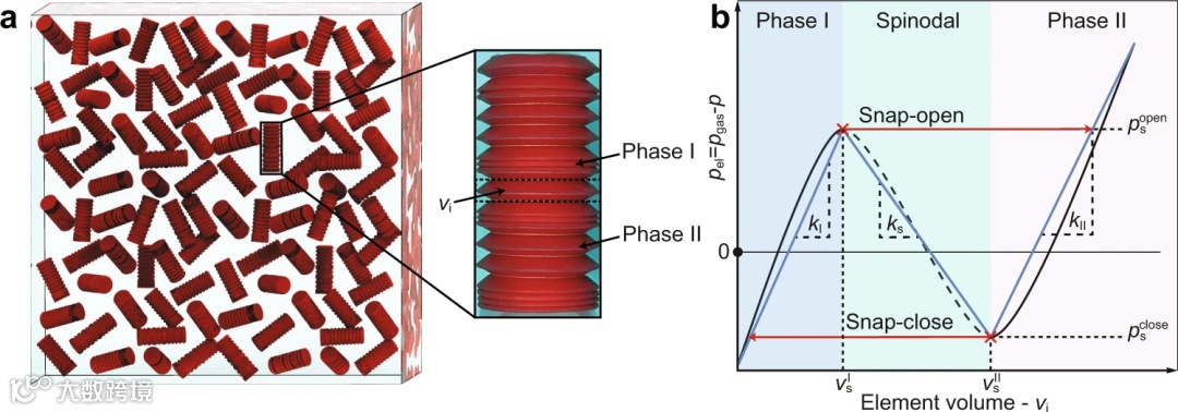 流体的热力学性质对能源和制冷循环至关重要,这些广泛而重要的循环是导致全球变暖的主要原因,尤其是制冷最近被列为污染最严重的单一技术(循环中使用了液体)。因此,创造一种具有特殊性质的流体具有非常重要的实际意义。多稳态结构是一类特殊的力学超构材料。超构材料是由微观级构建块组合而成的架构结构,通常以重复的模式排列。虽然由标准材料制成,但其构建块的几何形状可以产生独特的行为。如超构材料被设计为具有“负质量”,以操纵光波和应力波或提供超高的比刚度。多稳态超构材料具有针对规定负载的多种可能的平衡结构。这些亚稳态构型在每个机械单元(构造块)的状态下不同,这导致整体的变形场高度不均匀且非仿射。因此,通过仔细设计它们的构建模块,这些多稳定的结构可以“编程”,在外部刺激下发生形态变化。在各种规模上制造多稳定超构材料的能力,为隔振、超弹性行为、传感和驱动、软体机器人、可展开结构等一系列应用提供了令人振奋的可能性。
