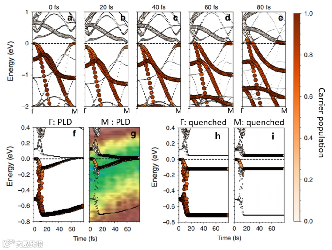 图3. 电荷密度波材料TiSe2中电子结构的动态演化,及理论模拟与实验结果的比较(g)