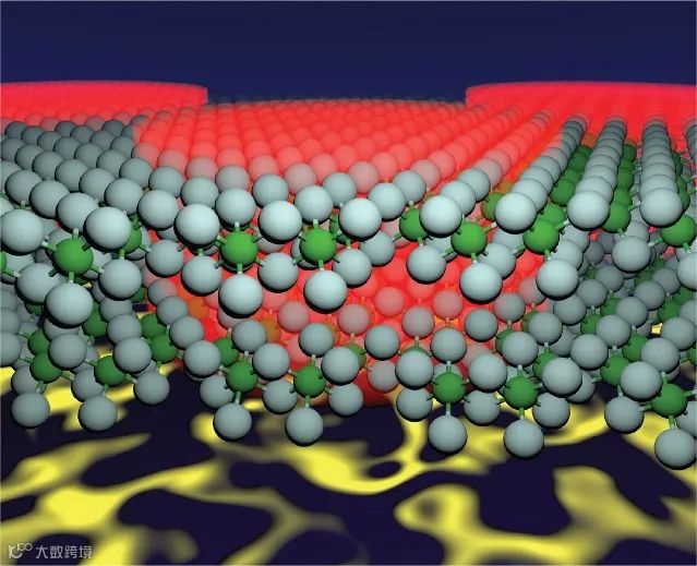 Figure . 在扭曲的CrI3双层材料示意图中,碘原子以灰色显示,铬原子以绿色显示