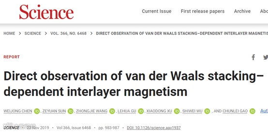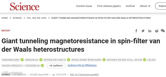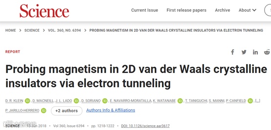 2018年6月,许晓栋课题组和Pablo Jarillo-Herrero课题组在Science同期发表背靠背论文,各自独立在CrI3二维磁体领域报道遂穿效应新成果。
