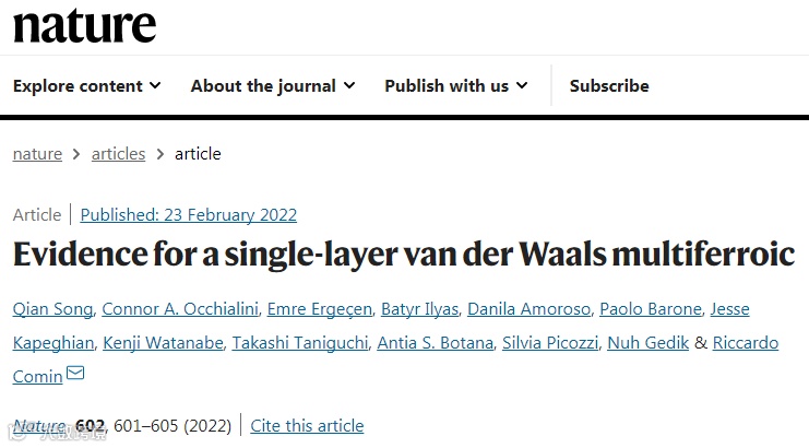 单层范德瓦尔斯材料 多铁性的证据。