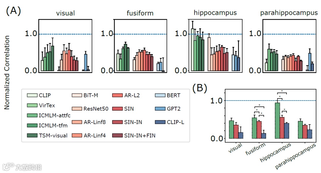 事实上在这篇论文中,作者利用公开的功能磁共振成像数据表明,多模态网络,包括CLIP,最能解释大脑海马体的数据。