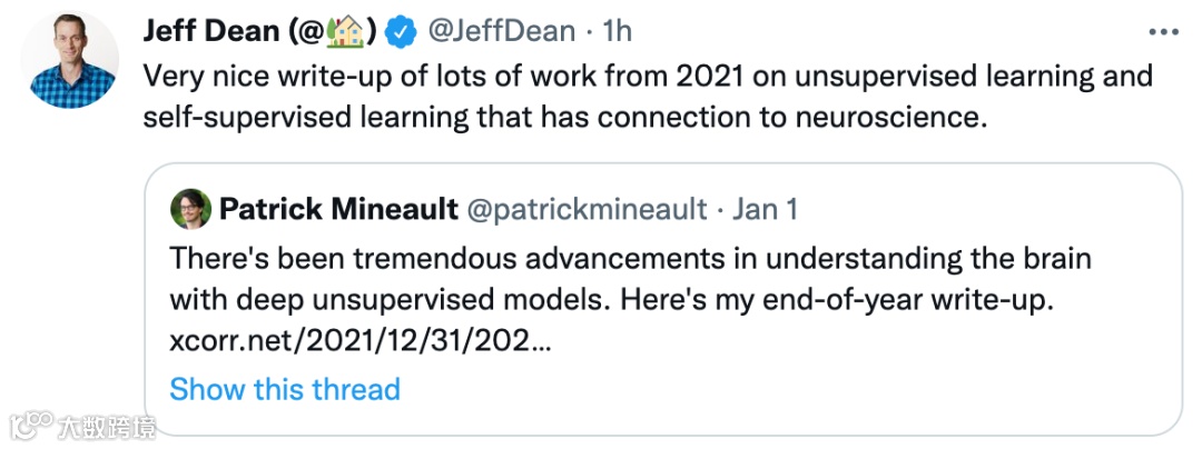 谷歌大牛Jeff Dean表示,这是2021年关于神经科学无监督学习和自监督学习一些非常棒的工作。