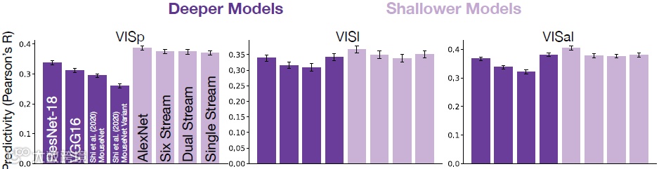Nayebi等人2021年的论文表示深层神经网络是受灵长类动物的视觉皮层启发而开发的伟大模型,但对老鼠来说就不那么适用了。