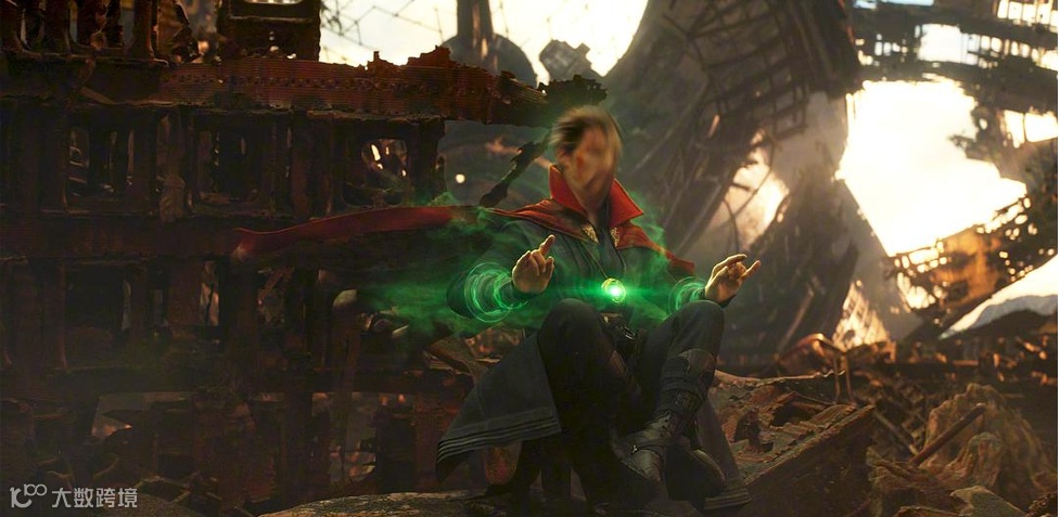 奇异博士遍历所有可能性寻找战胜灭霸的方法。《复仇者联盟3:无限战争》剧照