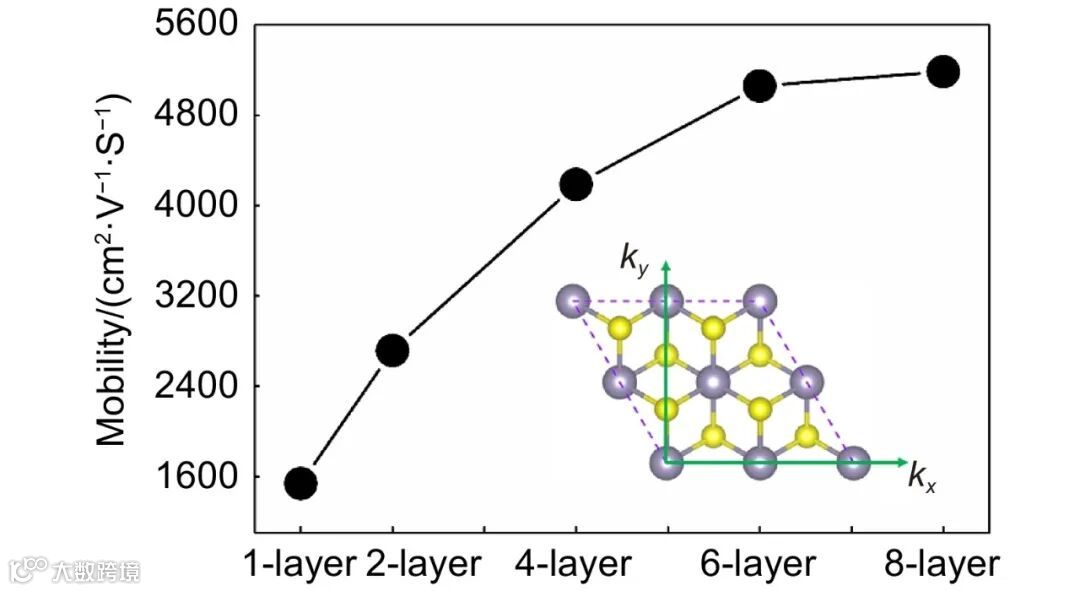 图2 通过第一性原理计算得到的电子迁移率与SnS2层数的关系