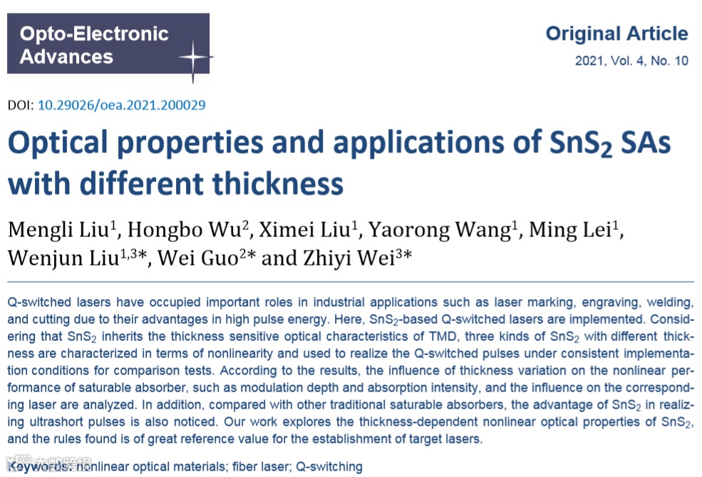 Liu ML, Wu HB, Liu XM, Wang YR, Lei M et al. Optical properties and applications of SnS2 SAs with different thickness. Opto-Electron Adv 4, 200029 (2021)