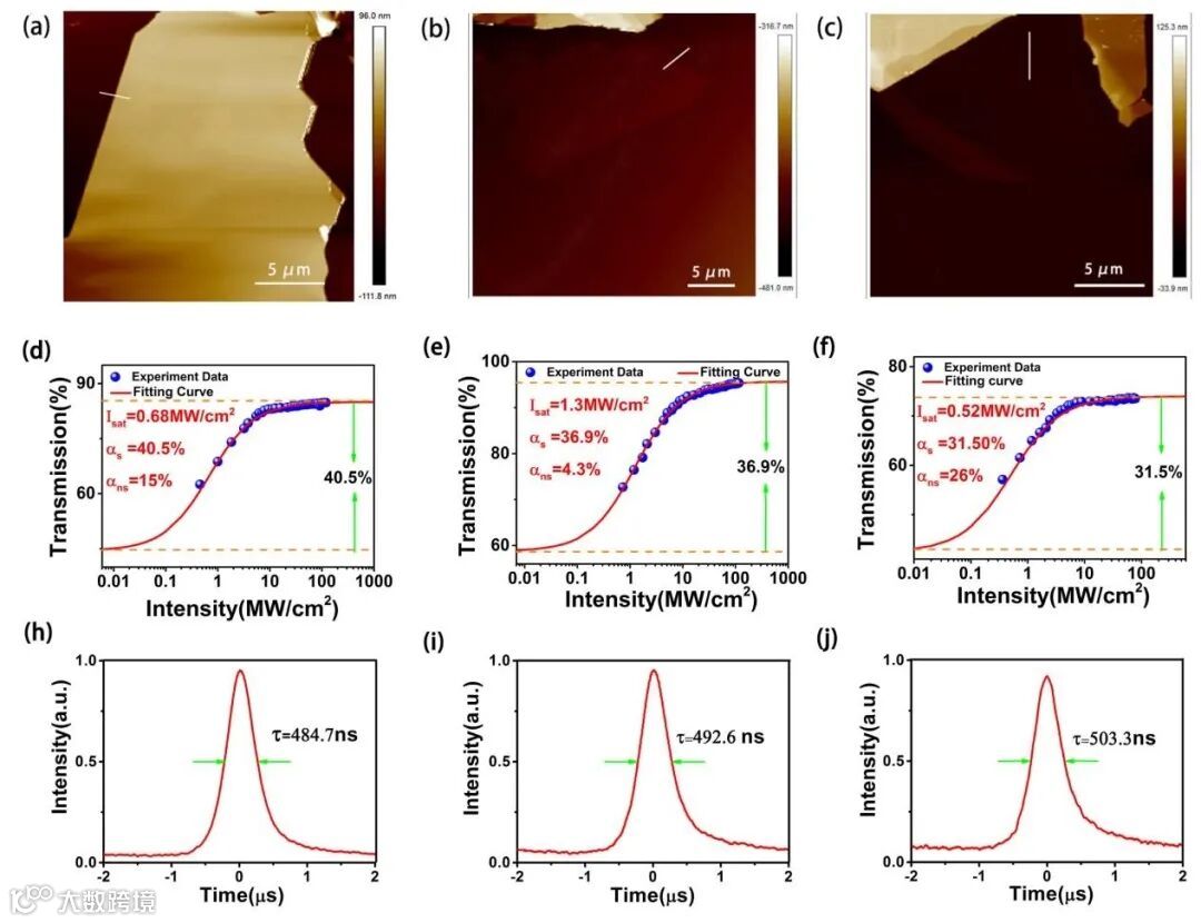 针对上述问题,北京邮电大学刘文军教授团队与中科院物理研究所魏志义研究员团队、北京理工大学郭伟教授团队合作,从理论和实验两个方面系统地研究了材料厚度对于可饱和吸收体的非线性控制以及对光纤激光器的影响。研究人员选用SnS2材料制备可饱和吸收体,通过控制其厚度,得到了具有不同调制深度的光子器件。通过搭建基于不同SnS2可饱和吸收体的光纤激光器,进一步分析了各种可饱和吸收体对激光器的稳定性、输出功率、启动阈值和脉宽等参数的影响。此外,他们还从理论上计算了材料厚度变化对其载流子迁移率和带隙结构的影响,揭示了可饱和吸收体的非线性和吸收随材料厚度变化的内在原因。