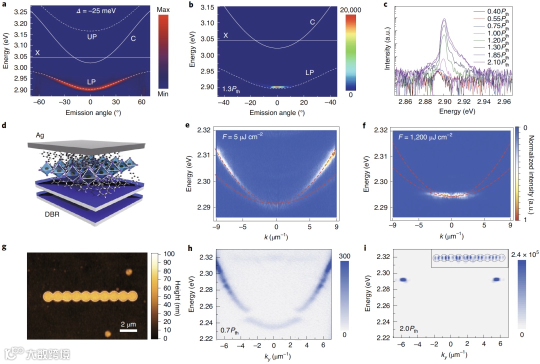 图一. 钙钛矿半导体微腔激子极化激元凝聚的实现