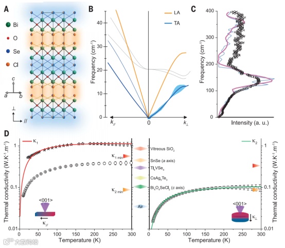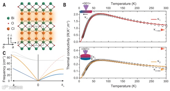 ▲图2| BiOCl中VDW界面的纵向声子软化降低了面外热导率。