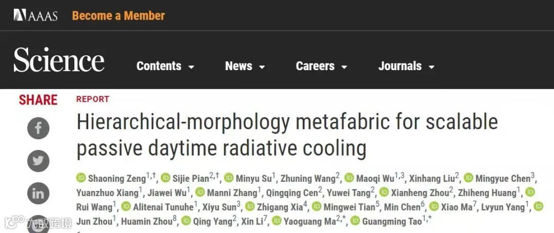 “坚持面向世界科技前沿、面向经济主战场、面向国家重大需求、面向人民生命健康,不断向科学技术广度和深度进军。”此技术对于热量失衡的地球而言具有重大意义,不仅可无源地满足人们对于户外场景的需求,还可以大规模量产,在生活和工作中无障碍地推广使用,在不同国家与地区为不同肤色的人提供服务。同时,超材料织物的主要材料是环境友好且生物可降解的,这意味着即使在年产百万吨的情况下,也不会对环境造成负担。
