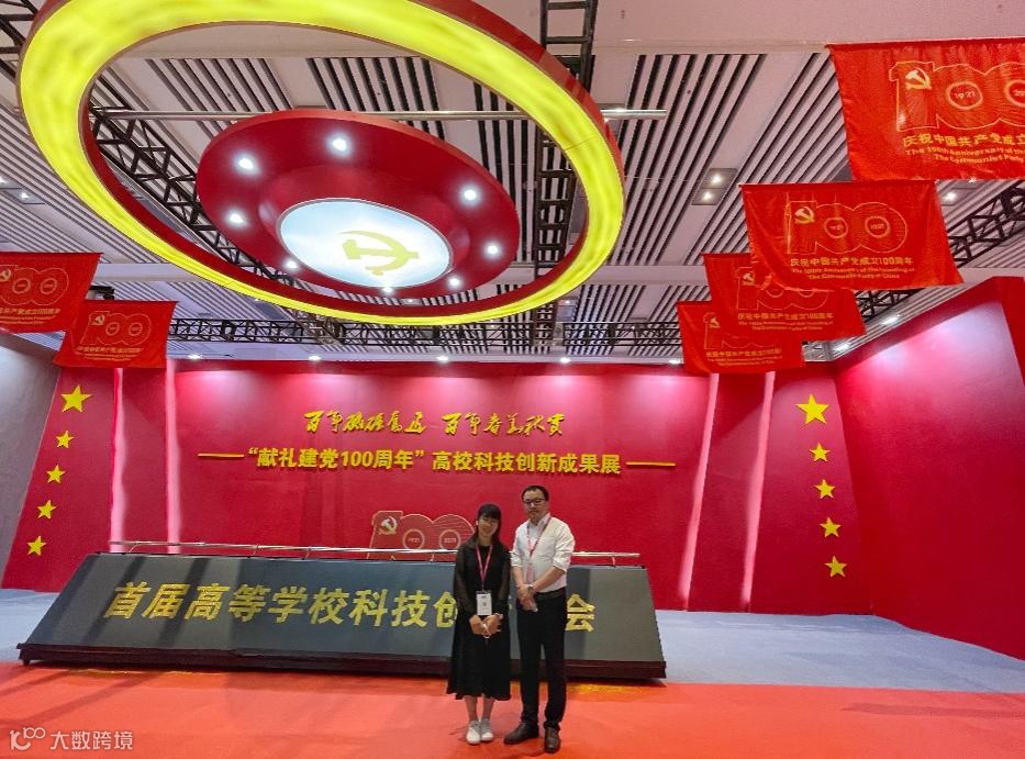 在2021年5月,在山东青岛举办的首届高等学校科技创新大会上,零能耗光学超材料制冷织物项目受邀参加高校科技创新成果展(华中科技大学仅两项),为建党100周年献礼(图9)。