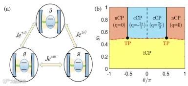 图(a)量子拉比三角模型示意图,人工规范场诱导的光子跃迁;(b)量子相图。