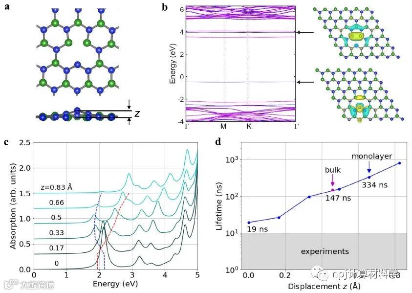 二维材料作为一个可以应用于光量子信息技术的载体,近年来得到快速发展。其中,六方氮化硼中基于点缺陷的单光子发射体的发现,激发了人们对相关材料中光学活性缺陷的大量研究。六方氮化硼的缺陷发射器目前面临的挑战是如何确定它们的原子结构。基于密度泛函理论的第一性原理计算能够提出各种可能的缺陷结构,且能与实验对比,但不能处理单光子发射器的一些关键特性,如激发态和辐射过程。基于量子化学和密度矩阵重整化组等方法也已被用于研究特定的缺陷结构,但迄今很少有报道将不同结构进行对比。在本工作中,来自美国加州理工学院应用物理与材料科学系的Marco Bernardi教授等人采用密度泛函理论和GW+Bethe-Salpeter方程的计算方法,研究了六方氮化硼中原子缺陷的光学性质、跃迁偶极子、激子和辐射寿命等性质。研究发现,不同的量子发射器的辐射寿命横跨6个数量级,发射能量涉及红外到紫外光区。通过贝叶斯统计分析,他们确认了各种高度可能的电荷中性缺陷发射体,其中本征缺陷VNNB的发射能量和辐射寿命与实验数据一致。通过对VNNB缺陷的进一步计算,作者发现其辐射特性对其原子结构的小扰动有很强的依赖性。该工作推进了对基于六方氮化硼单光子发射体的微观理解,并引入了一个计算框架来表征和识别二维材料中的量子发射体。该文近期发表于npj Computational Materials7: 85 (2021)。