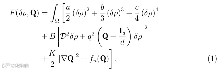 a,b,c,B,q,K,I为参数,D2 为 Hessian 算子。显然,该模型的未知变量有两个:实的层状密度变量 δρ 以及粒子的方向矩阵Q。