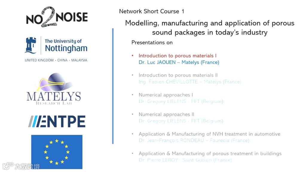 No2Noise网络平台组织了“Modelling, manufacturing and application of porous sound packages intoday's industry”系列课程,本期分享普信®声学院(比翱声学)两位国际工程专家,法国Matelys实验室的Luc JAOUEN和Fabien CHEVILLOTTE(材料声学研究领域的两位实战工程专家)在讲坛上的关于多孔材料的授课视频:Introduction to porous materials - Part 1、2。
