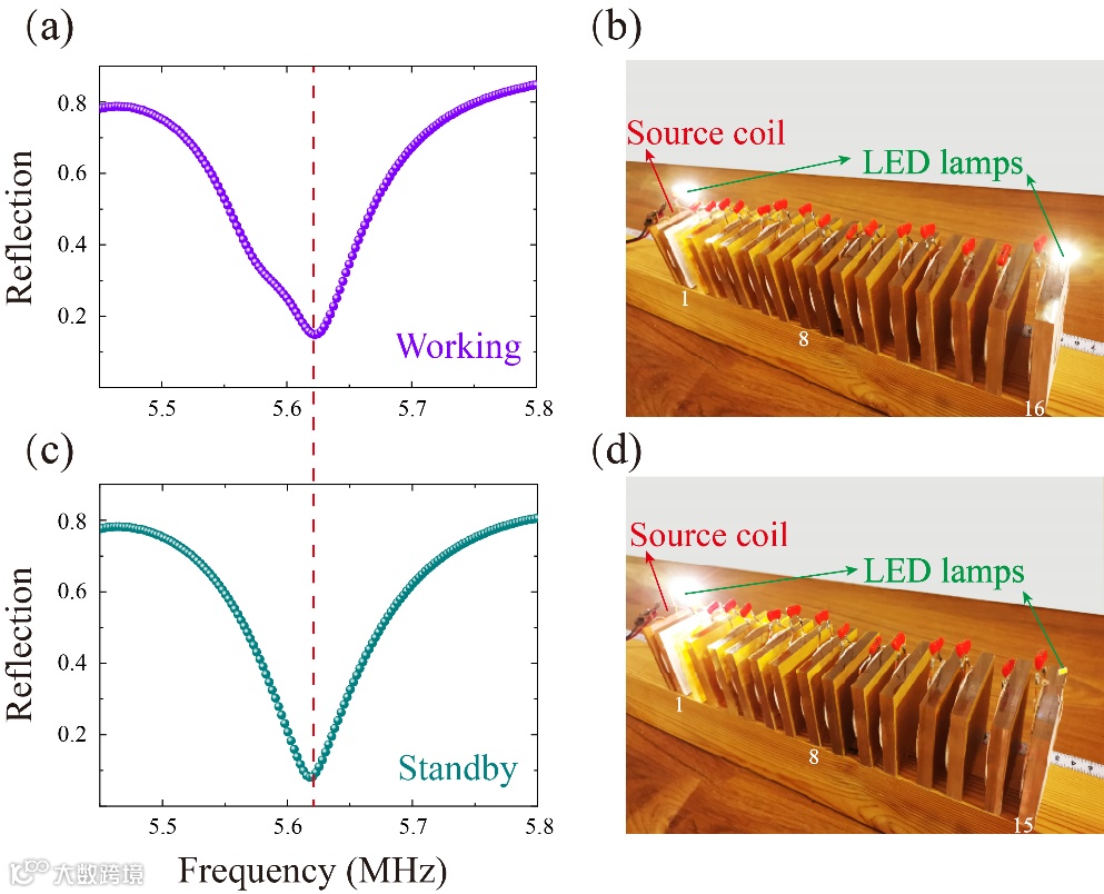 图2. 等效二阶PT对称的非厄米拓扑系统用于WPT在工作和待机状态时的演示。