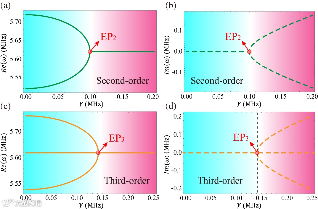 图3. 等效二阶PT对称系统和三阶PT对称系统的相图。