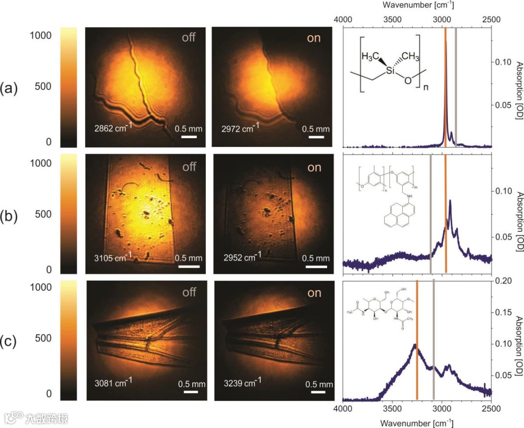 左边一列是共振中红外图像,