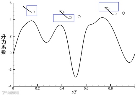 蚊子升力系数及峰值对应涡的贡献示意图[9]