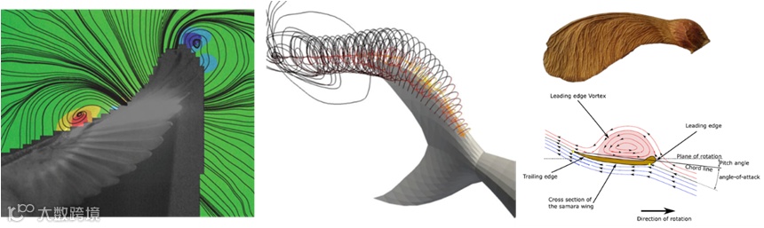 前缘涡机制是大部分昆虫飞行中最为普遍的机制。除了昆虫以外,鸟类飞行[5],鱼类游动[6],甚至植物种子下落[7]都存在前缘涡机制。