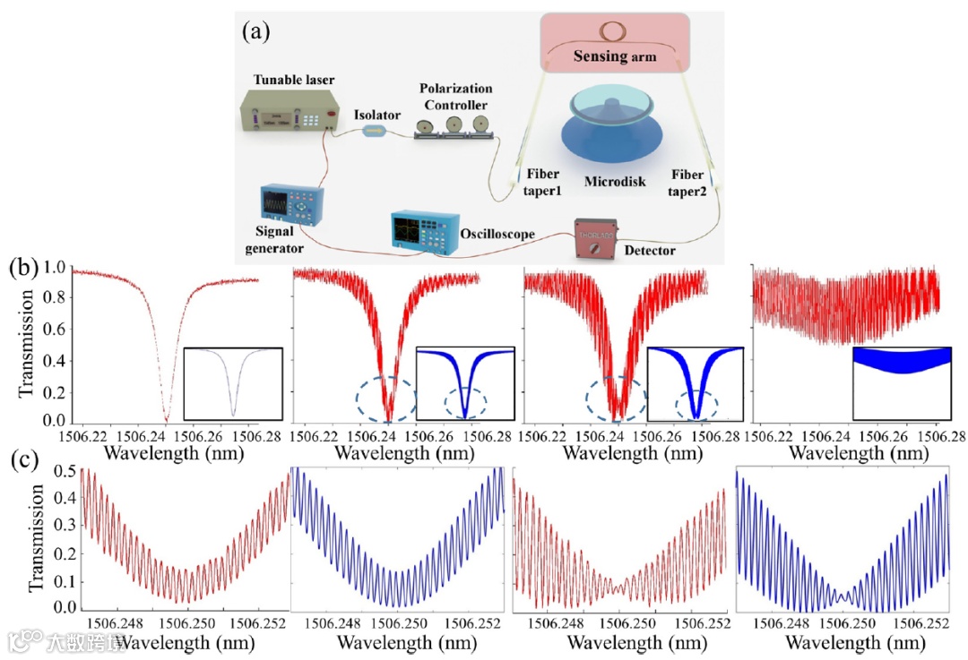 在过去的几十年中,回音壁模式(WGM)微谐振器取得了举世瞩目的发展。WGM微谐振器具有超高的品质因数和小模式体积,作为创新型传感器,在精密检测中表现出出色的性能。其多应用于温度和湿度折射率监测,生物传感,甚至测量单个纳米颗粒的尺寸。WGM微谐振器的传感机制通常可以分为色散传感和耗散传感。色散传感用于探测共振波长偏移,而色散传感旨在记录由于目标的额外损耗而导致的共振峰的线宽波动。在实际应用中,由于激光源的不稳定性或热波动引起的波长漂移噪声会影响色散传感的精度,而耗散传感对于低噪声水平的频率噪声则具有较强的敏感性,可用于实现更好的传感性能。基于色散机制的几乎所有类型的传感实验都可以在耗散传感系统上执行。然而,当前的很多器件都是在芯片上制造的,其传感臂的长度和耦合间隙将在制造前经过严格的计算和设计。一旦完成,就无法调整几何参数,并且任何与制造的微小偏差都会影响应用性能。