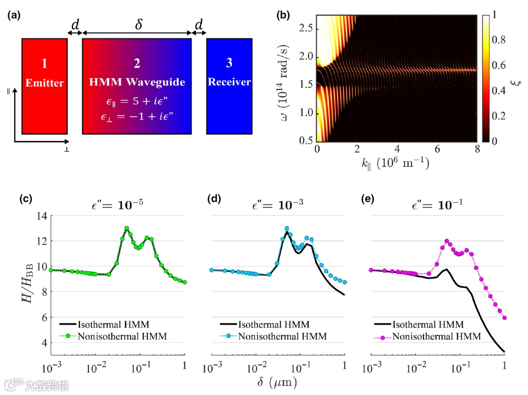 在不使用纳米级真空间隙的情况下利用近场功率密度的一种有前途的方法是通过双曲线超材料(HMM)波导。当放置在热库和冷库之间时,理想的HMM可以传输几微米的表面波,从而扩展了近场增强功能。但是,考虑到由于波导内实际吸收水平而引起的传输损耗时,在较宽的间隔处,增强效果明显降低。近日,来自密歇根大学的研究小组调查了非等温HMMs中内部源的作用。研究者证明,在某些情况下,HMM的辐射占据传递给接收器的总辐射热的90%以上,并且这些额外的源可以在很大程度上补偿与从发射器到接收器的传输减少相关的光学损耗。最后,实验人员研究了一个现实的三体系统中的光谱传输,该系统在边界(发射器和接收器)与波导(HMM)之间具有不匹配的光学特性。该模型表明,即使主要的辐射贡献来自波导,近场的热输运仍对边界具有光谱选择性。这项工作可以实现非等温发射器-波导-接收器系统的设计,该系统可以在较宽的间隔内传输近场功率电平。相关研究发表在杂志《Physical Review Applied》上。(刘乐)