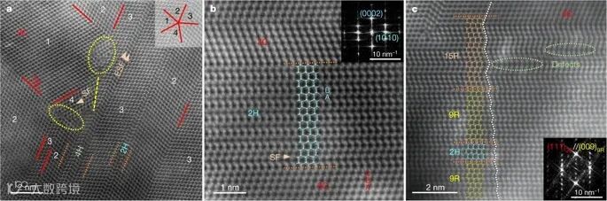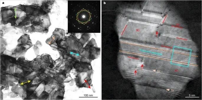 图2:在15 GPa和2000°C下合成的纳米孪晶金刚石复合材料的HAADF-STEM图像