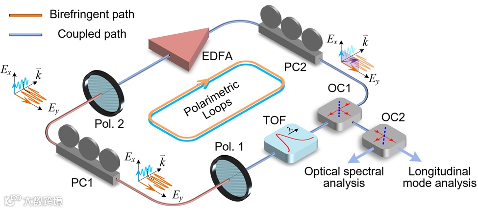 在本工作中,研究人员提出并证明了一种可以在单一空间谐振腔内实现的基于偏振态多样化的PT对称系统,通过控制光的偏振态特性,调谐谐振腔的特征频率、增益、损耗和耦合系数,实现PT对称破缺。基于此概念设计的光纤环形激光器,无需高Q值光学滤波器,即可有效抑制激光边摸,获得稳定的单纵模输出。