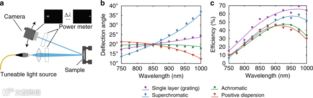 最后,为了进一步证实超表面控制色散结构的有效性,作者进行了实验验证。实验装置及结果如图8所示。