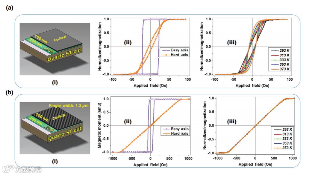 由于表面声波(SAW)设备对不同的化学和物理刺激敏感,因此具有出色的传感器功能。将磁致伸缩材料添加到SAW结构中使磁性SAW(MSAW)通过磁致伸缩应变探测磁场并改变弹性常数。利用不同的弹性波提高磁场灵敏度的研究已取得了进展。但是,这些研究没有考虑热效应。当解调传感器的输出信号时,对多种刺激的敏感性会相互影响,这是相互复杂的。磁场测量中的主要挑战在于SAW设备的频率温度系数(TCF)大。从MSAW器件的应用角度来看,这不仅在温度变化很大的情况下,而且在温度波动的环境中都变得极为有害。除了TCF以外,控制外加磁场下磁化响应的磁各向异性也可能与温度密切相关。通常,温度升高会由于其熵的增加而导致铁磁材料的内部能量增加,因此会导致各向异性常数的降低。磁晶各向异性,应变感应各向异性和磁场感应各向异性都在强度或方向上强烈依赖于温度。结果,MSAW响应可以通过多种方式受到温度的强烈影响。因此,如果打算开发一种在实际较宽的温度范围内能真正补偿温度的MSAW传感器,那么就必须消除温度对磁性和TCF的影响。