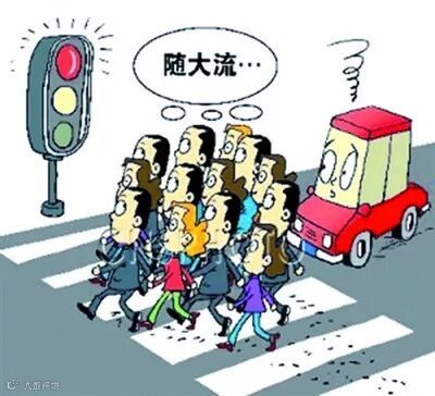 网上流行一词语叫“中国式过马路”,中国式过马路就是,筹齐一群人一起走,两三人自动抱团,而红绿灯就是一个摆设,一人不敢行事,人多了就天生有一种从众心理,即便违法也心怀侥幸,心想毕竟法不责众嘛。