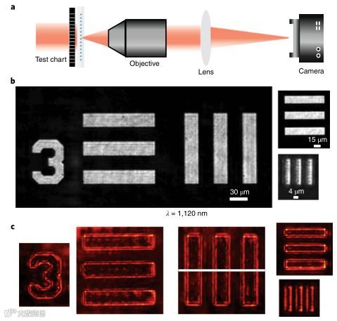 最后,作者利用超透镜作为聚焦元件实现了超薄单片图像处理系统,进一步压缩了成像系统体积。