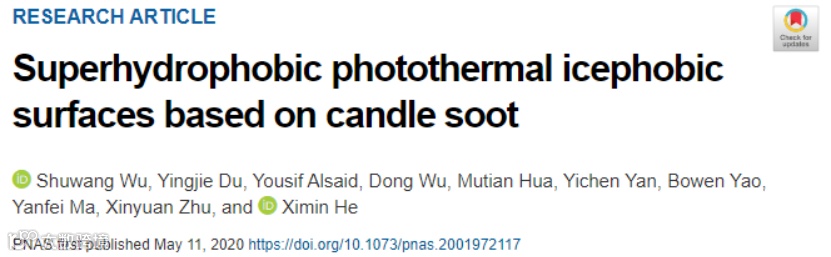 Shuwang Wu, et al. Superhydrophobic photothermal icephobic surfaces based on candle soot. PNAS 2020, 202001972.