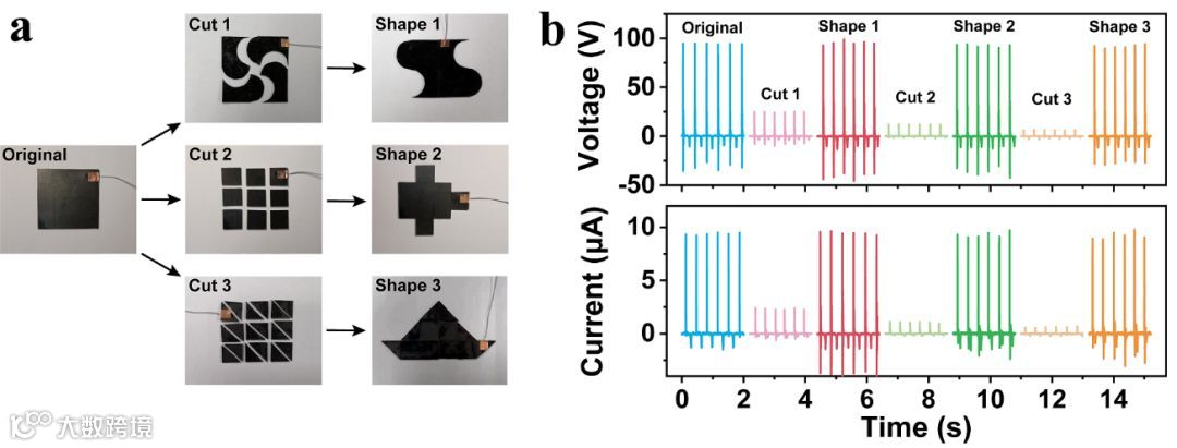 图3 IU-TENG的形状可裁剪性能