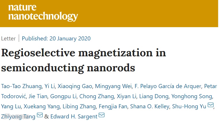 Zhuang, T.-T.; Li, Y.; Gao, X.-Q. et al.Regioselective magnetization in semiconducting nanorods. Nat. Nanotechnol.2020,