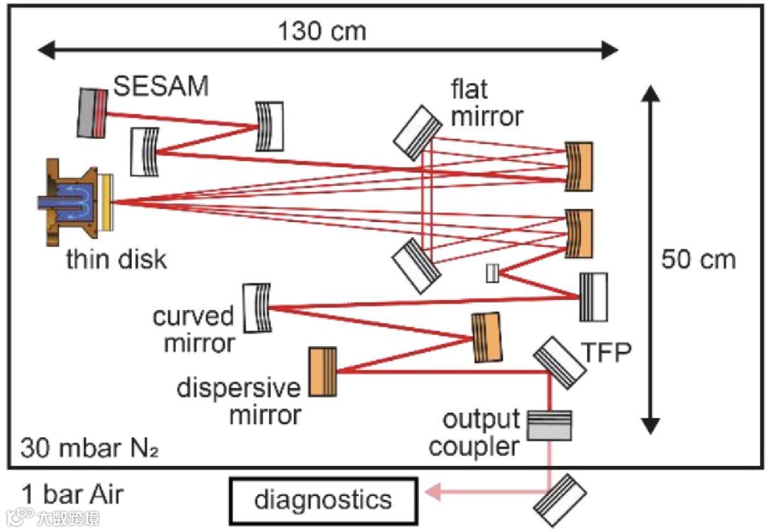 超快碟片振荡器原理图,密封确保激光腔内的低压环境