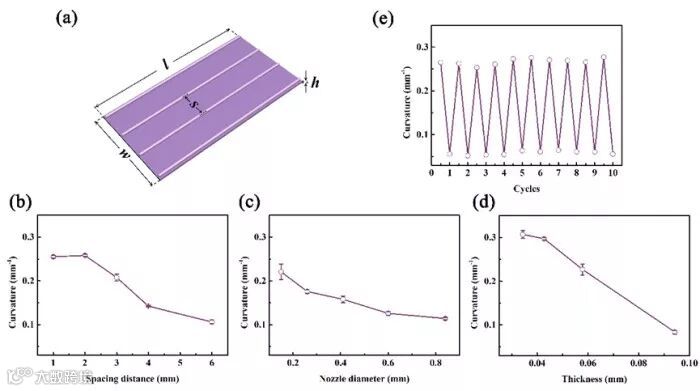 Figure 2. 不同打印参数对样品曲率的影响。