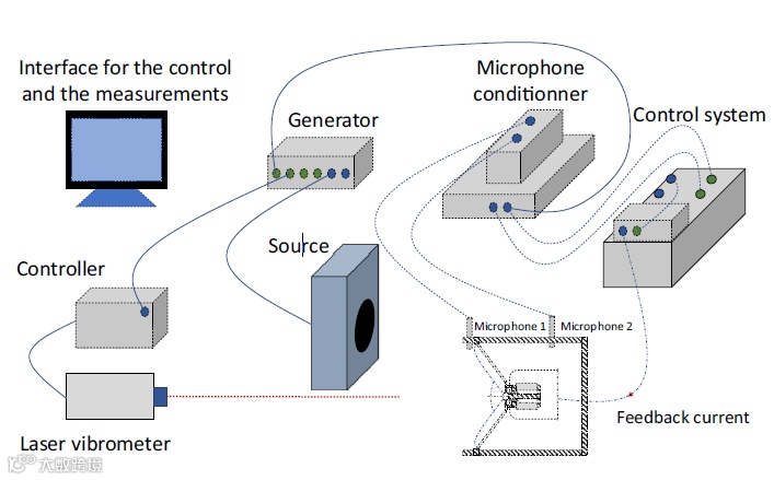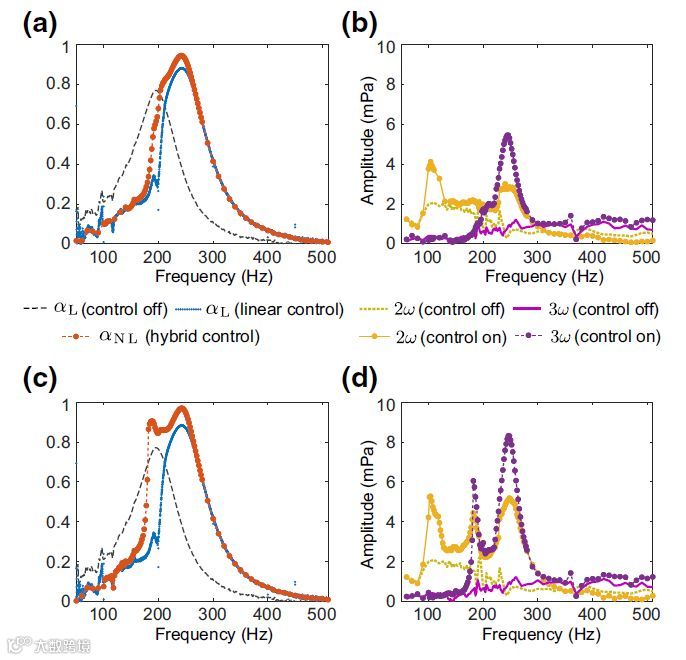 低频吸声的主要解决方案是使用无源窄带谐振器,利用非线性效应可以进一步提高其吸收水平和带宽。但是,这些效应通常是在高强度水平下触发的,而对非线性吸收机制的形式没有太多控制,近日,来自洛桑联邦理工学院的Hervé Lissek研究小组提出并实验证明了以电声谐振器为原型的非线性主动控制框架,从而可以对非线性形式和任意低强度阈值的声波进行控制。具体地,其提出的架构既有位于扬声器正面的麦克风对前压力的线性前馈控制,也考虑测量后腔内部压力与外壳上麦克风所估计的膜位移的非线性反馈控制。实验表明,即使在弱激励水平下,也可以观察到和控制系统的非线性行为。通过数值和实验证明,在低频范围(50–500 Hz)中,非线性控制律可以改善吸声性能,即在增加最佳吸声带宽的同时增大吸声性能,最大化吸收系数值,并且仅产生可忽略不计的非线性失真。该项实验方法可以扩展为实现各种类型的线性和/或非线性混合控制,从而为控制非线性波和实现非平庸的波动现象开辟了新途径。相关研究发表在杂志《Physical Review Applied》上。(短文作者:刘乐)