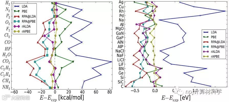 本文综述的重点是含时密度泛函理论(TDDFT)中的静态非局部交换关联泛函所描述的RPA和GW方法中的物理理论、实现途径和意义。来自丹麦技术大学物理系计算原子尺度材料设计(CAMD)的Thomas Olsen教授带领的团队,并没有详述RPA和GW方法本身,该方法的综述已在另一篇综述中阐明。在“理论”一节中,他们分别介绍了基于绝热连接涨落耗散定理和Hedin方程的基态和QP能量计算的基本理论。作者为HEG引入了几个非局域的交换关联泛函,并描述了从(半)局域交换关联泛函构造非局域交换关联泛函的重整化过程。在“实现”一节中,作者描述了非局域交换关联泛函的数值实现,包括将HEG泛函推广到非均匀密度体系的不同策略、倒空间格点和基集收敛性等方面。在“结果”一节中,作者提供了一系列计算结果,用以说明交换关联泛函对总能量和QP能带结构的影响和重要性。具体而言,作者评估了重整化绝热局域密度近似(rALDA)和重整化绝热广义梯度近似(rAPBE)在固体结构参数、共价固体和共价分子的原子化能、氧化物形成能、vdW键、静态关联的原子二聚体的解离、表面和化学吸附能、结构相变,以及块体和二维半导体的QP能等方面的性能。最后,对全文进行了总结和展望。该文近期发表于npj Computational Materials 5: 106 (2019)。
