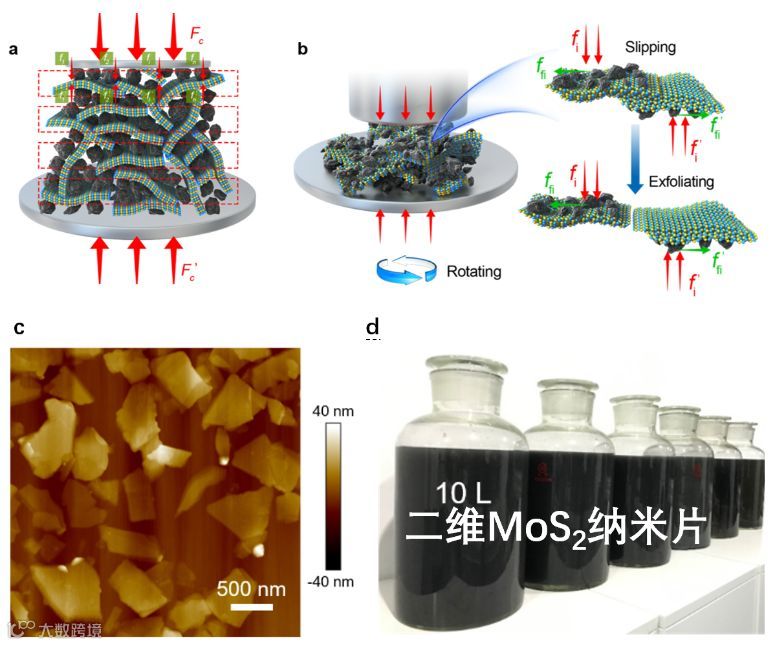 最近,清华大学-伯克利深圳学院成会明、刘碧录团队受固体润滑剂失效原理启发,发展出了一种力传输剂辅助纯剪切力剥离生产二维材料的新方法(iMAGE技术, interMediate-Assisted Grinding Exfoliation)。固体润滑剂的失效源于块体材料层间的滑移,而滑移的结果便是块体材料被剥离为少层。受此启发,研究者采用硬质研磨颗粒(力传输剂)辅助与加快这一过程,从而快速剥离制备二维材料。