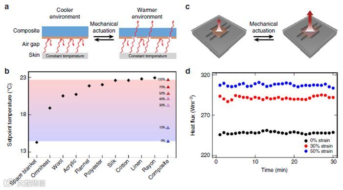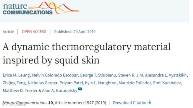 基于此,本文受乌贼皮肤动态变色的启发,利用太空毯的静态红外反射设计,开发出一种具有动态体温调节特性的复合材料。
