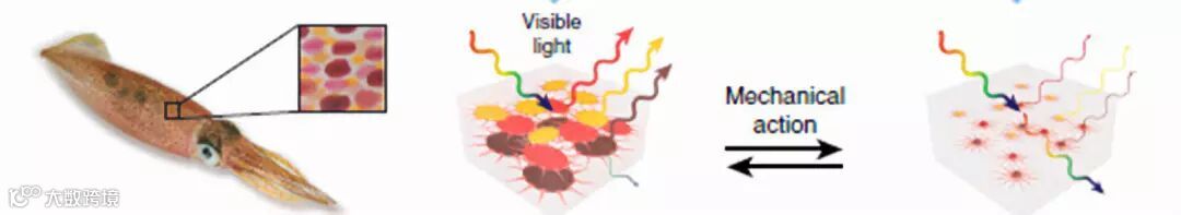 乌贼皮肤由多层组成,其中一层包含红色、黄色和棕色的色素细胞器官,这些器官由通过神经支配的肌肉细胞环绕中央色素细胞组成,并按一定序列排列。这种高度进化的天然结构允许色素细胞通过肌肉细胞在收缩的点状和扩张的板状状态之间动态切换,从而调节局部着色并改变光通过皮肤的传输。因此,其成为新型体温调节平台有前途的模型。