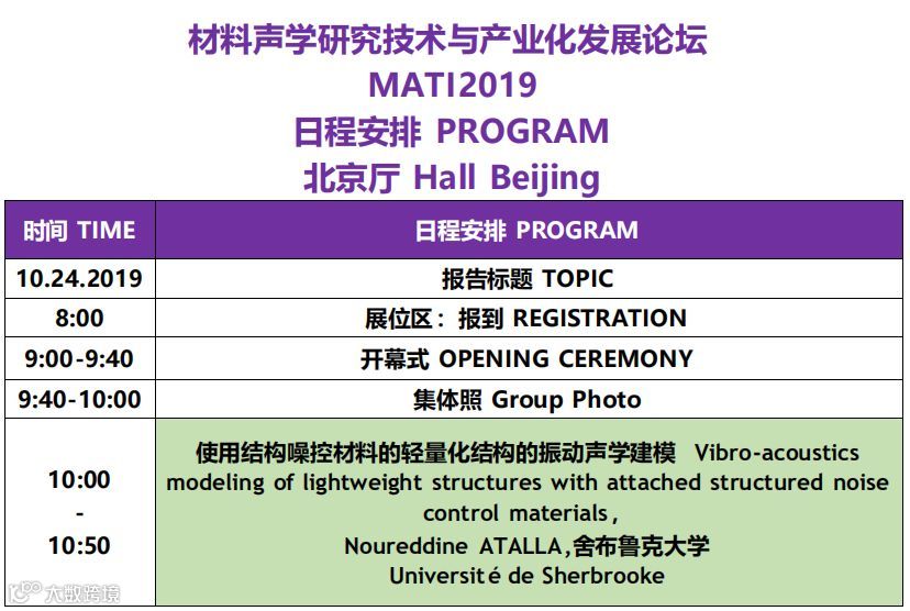 为方便您提前做好会议安排,以上为MATI 2019材料声学技术与产业发展国际论坛的主分会场具体报告日程,以供您参考。