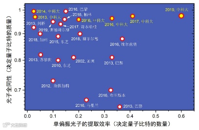 图2:基于量子点的单光子源的两个核心指标的综合性能国际发展总结。
