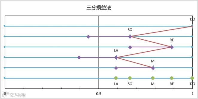 把“嗦”的琴弦长度量出1/3,然后加回去,或者说“益”1/3。琴弦长了,拨动时发出的声音变低了,听上去是“来”。把“来”的琴弦缩短或“损”1/3,得到“啦”。把“啦”的琴弦长度量出1/3,然后“益”回去,得到“咪”。